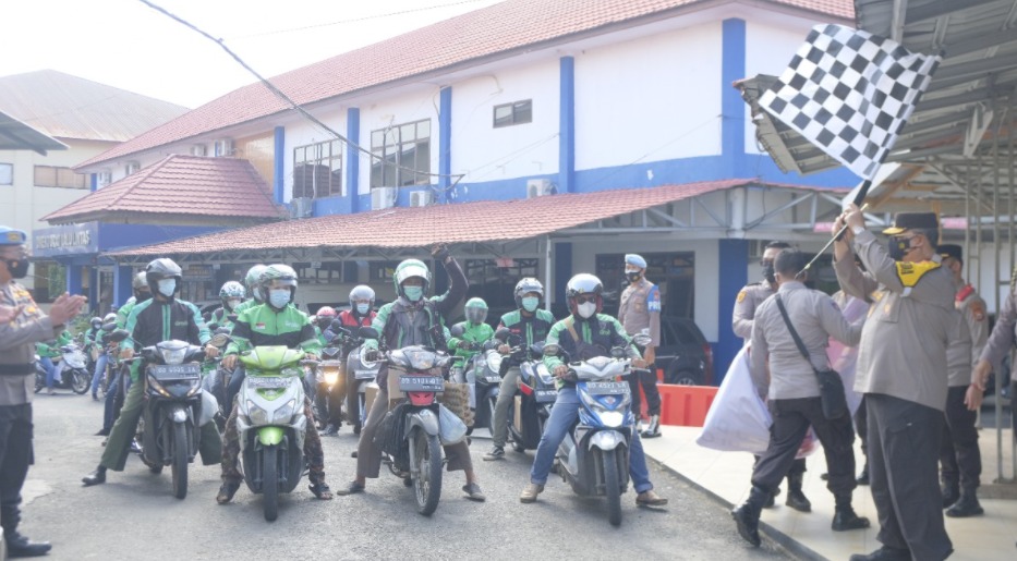 “Kita bisa saja membagikan dengan armada Polri. Sengaja kita manfaatkan para ojek online sebagai upaya memahami keluhan mereka dan paling tidak dapat memulihkan perekonomian,” ujarnya.