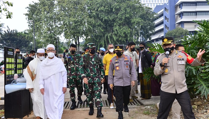 MITRAPOL.com, JAKARTA- Panglima TNI Marsekal TNI Hadi Tjahjanto bersama Kapolri Jenderal Listyo Sigit Prabowo meninjau lokasi vaksinasi massal di Cibis Park Jalan TB Simatupang, Jakarta Salatan, Selasa (6/7/2021).