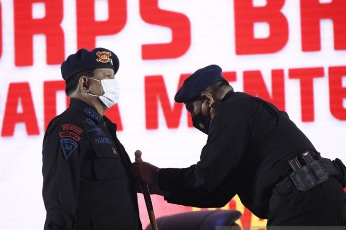 DEPOK – Korps Brimob Polri menganugerahi Menteri Pertahanan (Menhan) Prabowo Subianto dengan gelar warga kehormatan. Prabowo dinilai memiliki dedikasi dan loyalitas yang tinggi terhadap bangsa dan negara.